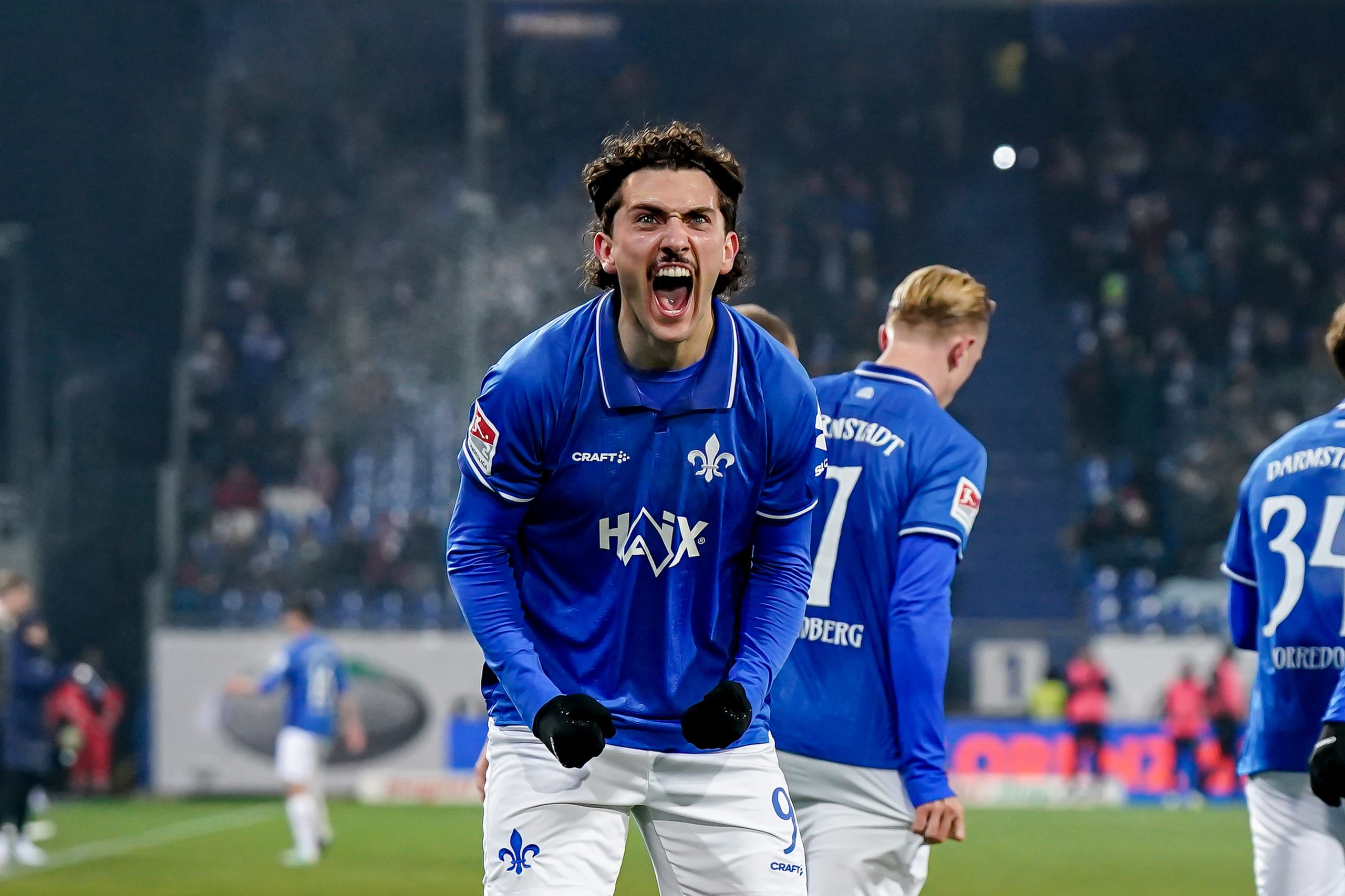 DARMSTADT, GERMANY - NOVEMBER 22: Fraser Hornby of SV Darmstadt celebrates after scoring his team's third goal during the 2. Bundesliga match between SV Darmstadt 98 and SpVgg Greuther Fürth at Merck-Stadion am Böllenfalltor on November 22, 2025 in Darmstadt, Germany. (Photo by Daniela Porcelli/Getty Images)