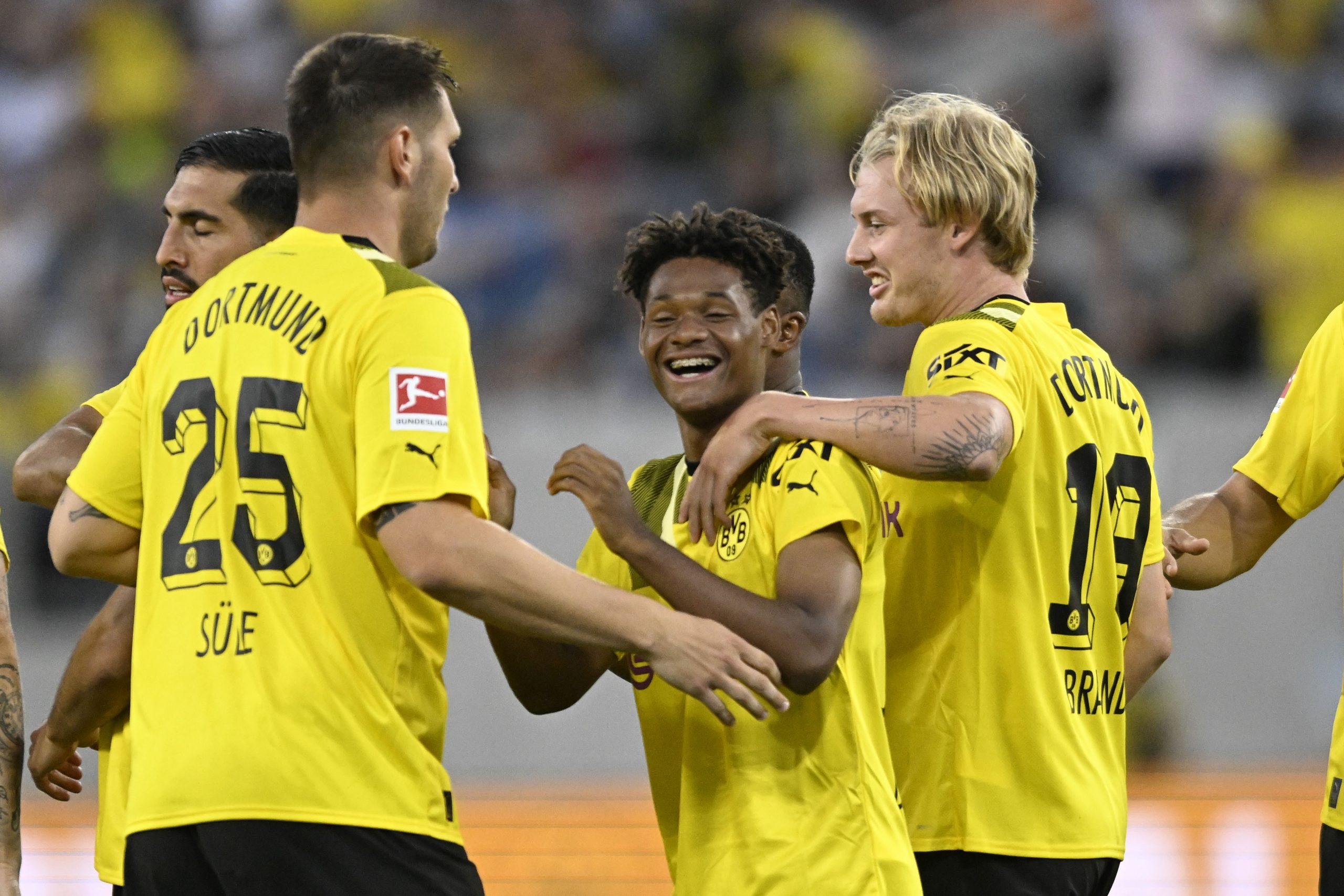 SAN DIEGO, CA - JULY 27: Borussia Dortmund players celebrate after Julien Duranville #16 scored during a friendly match against the San Diego Loyal July 27, 2023 at Snapdragon Stadium in San Diego, California. (Photo by Denis Poroy/Getty Images)