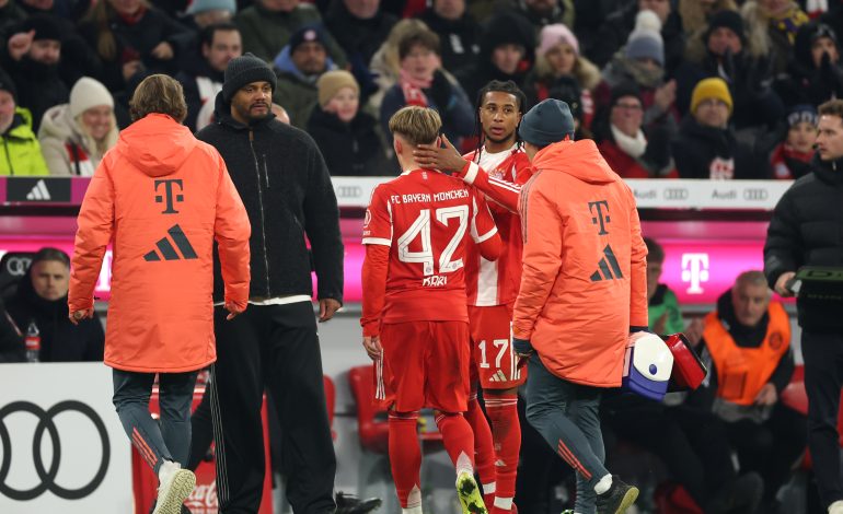Nach dem Schlusspfiff gab Karl gegenüber „Sky“ aber Entwarnung und erklärte den Grund für seine Auswechslung. „Ich habe gestern im Training einen Schlag abbekommen, aber es ist alles gut. Ich war beim Check und alles passt“, so der Youngster. Damit wird er den Bayern um Trainer Vincent Kompany voraussichtlich für das kommende Champions-League-Spiel gegen den FC Arsenal (Dienstag, 21 Uhr) zur Verfügung stehen und könnte den gesperrten Luis Díaz ersetzen.