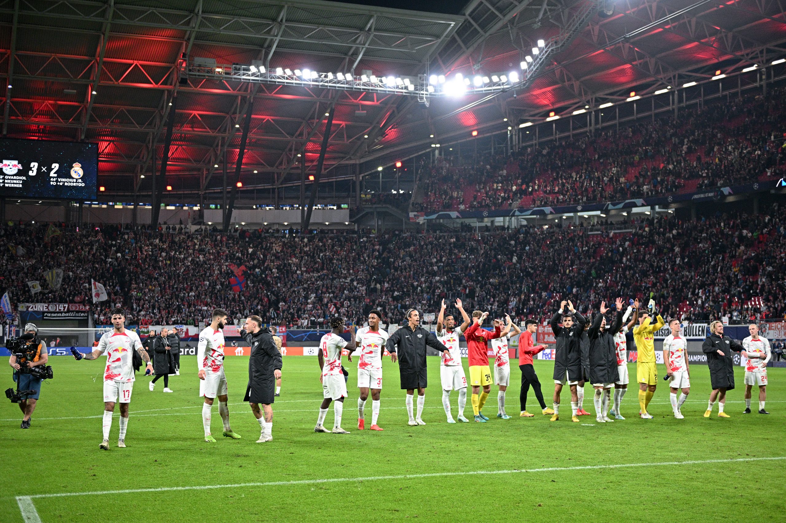 RBL - Real 3:2, Leipzig feiert am 25. Oktober 2022 seinen ersten Sieg im Europapokal gegen Real Madrid. Foto: Stuart Franklin/Getty Images.
